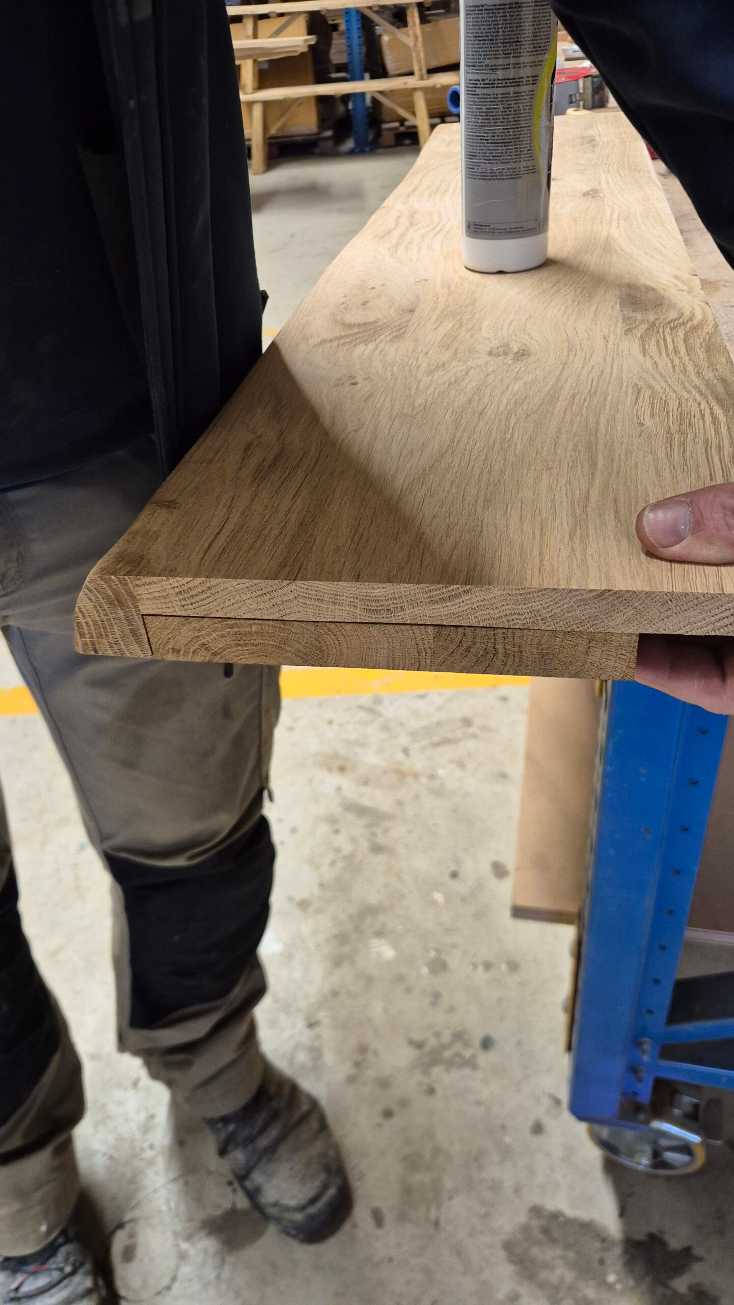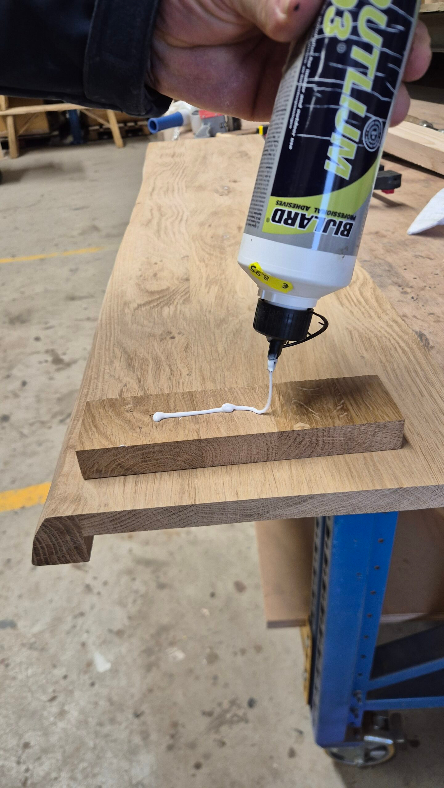 Het losse eiken eindstuk lijmt u vast aan de vensterbank waarna u een uur deze vast zet met lijmklemmen