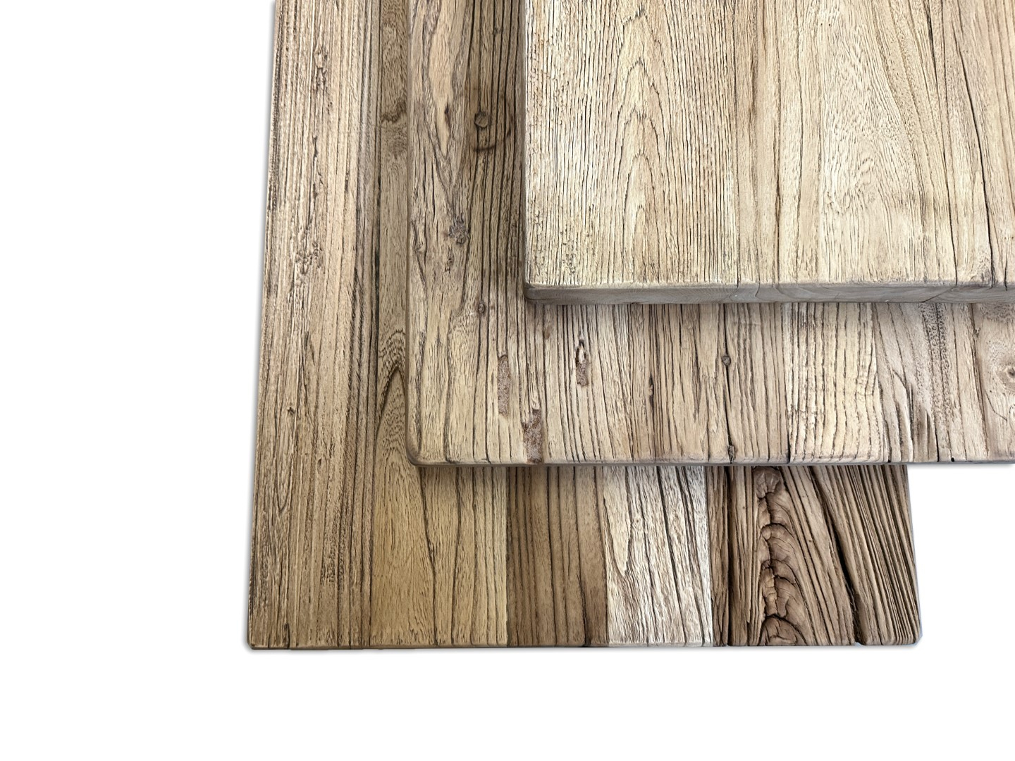 Het uit de binnenlanden van Azië verzamelde, gerecyclede iepenhout, staat bekend om zijn prachtige nerven en unieke tekeningen die het hout zo authentiek maken. Geen andere houtsoort heeft zo’n kenmerkende uitstraling als Elmwood.