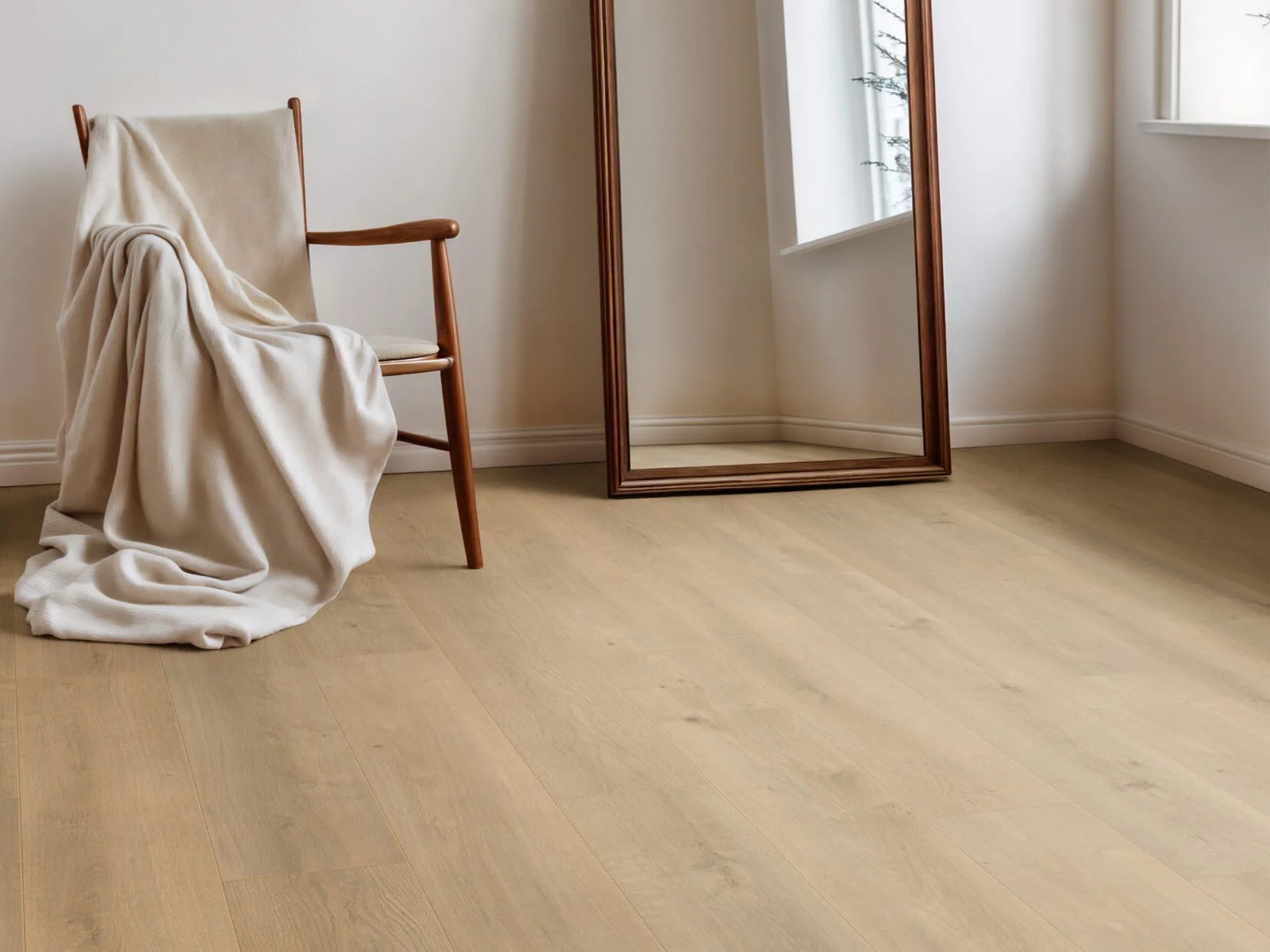 Onderhoudsvriendelijk waterwerend laminaat met een extra brede plank voor een mooi ruimtelijk effect.