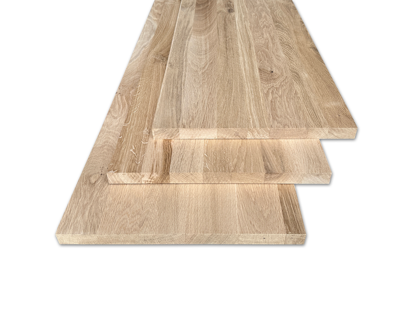 Massief eiken panelen van 28 mm dik met doorlopende lamellen uit Oost-Europa.