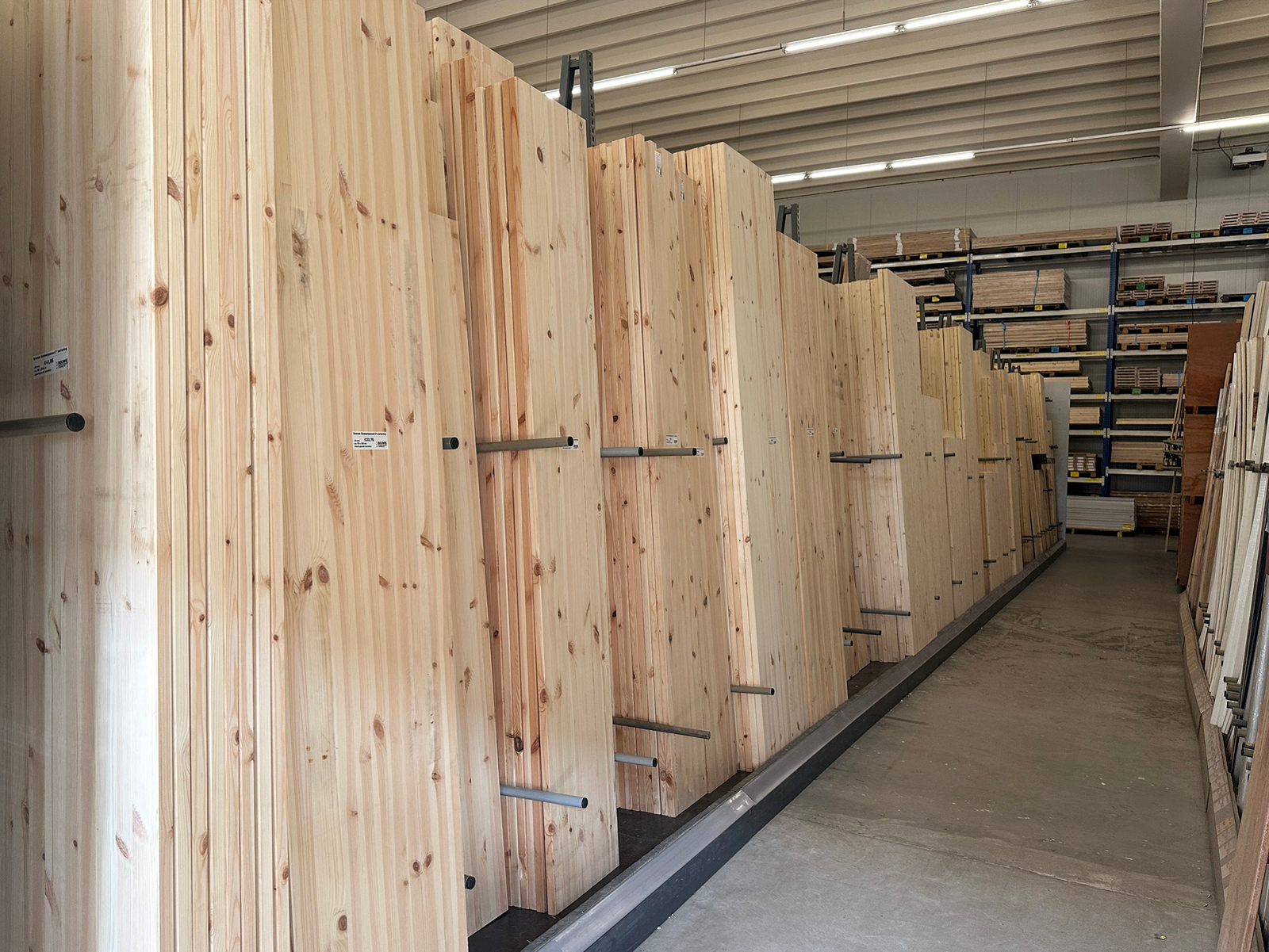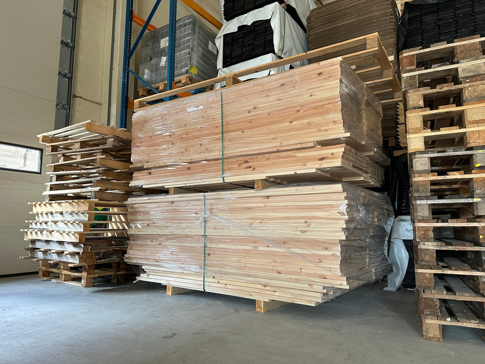Doorgaans een volle trailer vuren en grenen timmerpanelen op voorraad (+/- 1.000 panelen)