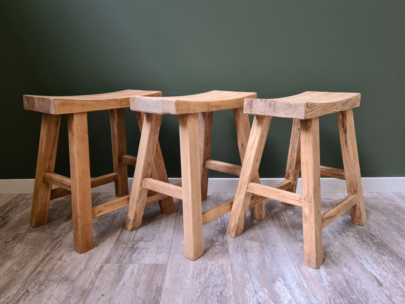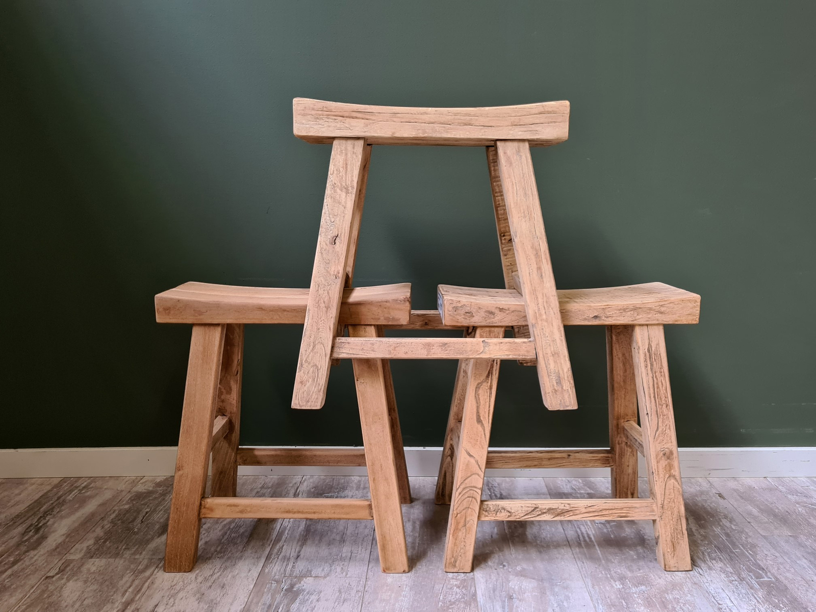 Ieder exemplaar is uniek, afmetingen en kleuring verschillen per krukje.
